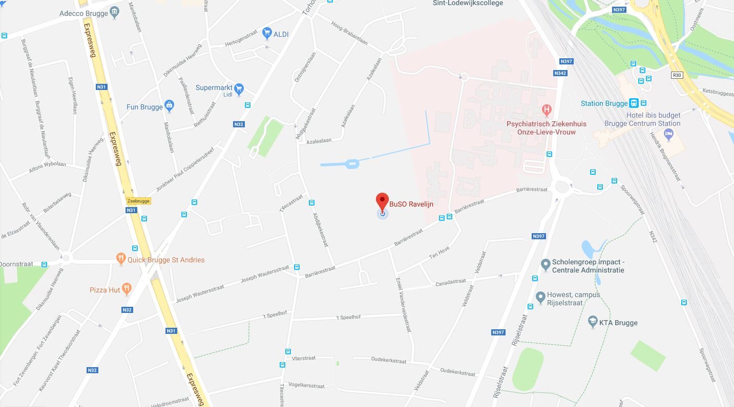 Met de auto is het vlot bereikbaar via de Expresweg (N31 Brugge – Zeebrugge), te voet of met het openbaar vervoer (10 minuten wandelen vanaf het station Brugge).